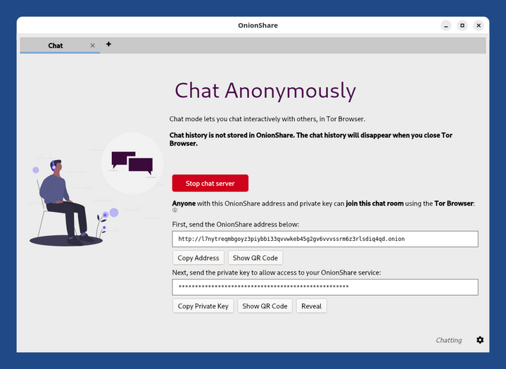 Avec le service Dialoguer de OnionShare :