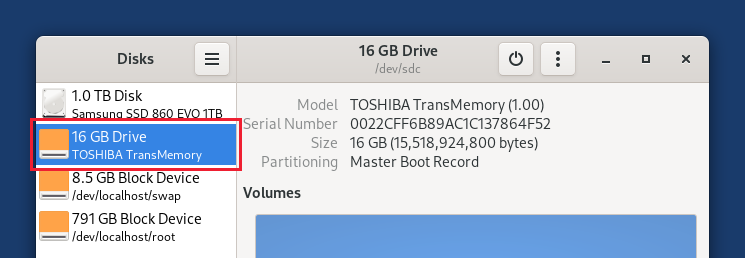 Install intermediary using GNOME Disks